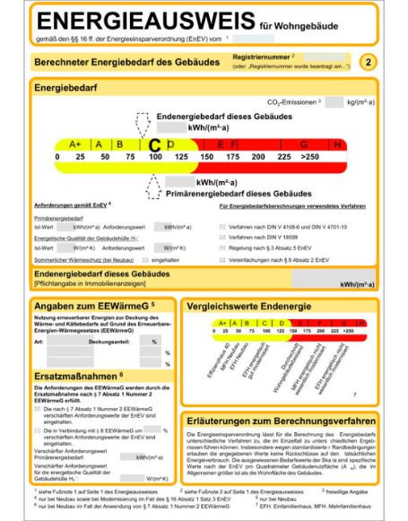 Der Energieausweis ist ein wertvolles Instrument, das Transparenz und Klarheit auf dem Immobilienmarkt schaffen soll. Die neue Energieeinsparverordnung (EnEV 2007) macht den Energieausweis für Wohngebäude ab dem 1. Juli 2008 schrittweise zur Pflicht. Mit dem Energieausweis für Gebäude bekommen Mieter und Käufer erstmals die Möglichkeit, den Energiebedarf oder -verbrauch verschiedener Gebäude unkompliziert bundesweit miteinander zu vergleichen.